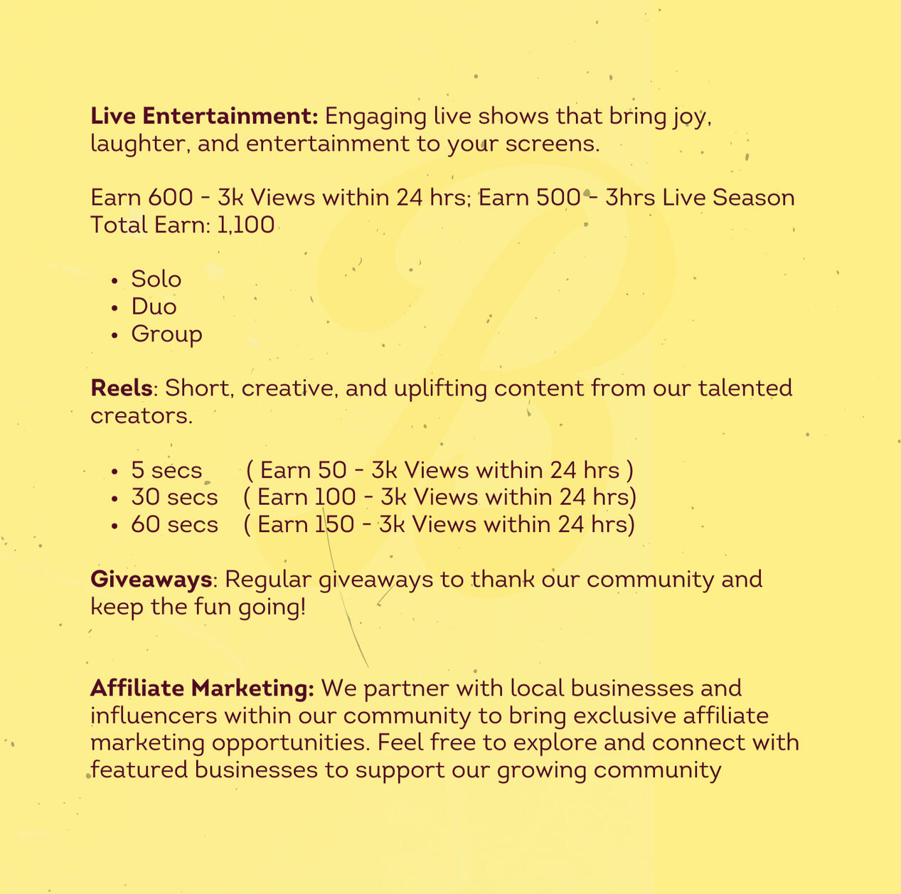 our services, including live events and giveaways.6. Changes: These terms may be updated periodically. Continued use of the platform